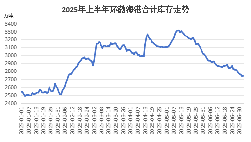 上半年由于煤炭供需關(guān)系持續(xù)寬松,煤價(jià)不斷下行,跌幅均值在20%以上。產(chǎn)量方面,2025年上半年國(guó)內(nèi)原煤產(chǎn)量整體保持同比增長(zhǎng)趨勢(shì),據(jù)國(guó)家統(tǒng)計(jì)局?jǐn)?shù)據(jù),1-5月全國(guó)原煤產(chǎn)量達(dá)到19.9億噸,同比增長(zhǎng)6%;庫(kù)存方面,上半年北方港口煤炭庫(kù)存整體持續(xù)處于歷史偏高水平,持續(xù)累庫(kù)至5月月中創(chuàng)歷史最高水平后回落,截至6月30日環(huán)渤海港合計(jì)煤炭庫(kù)存在2765.4萬(wàn)噸,較年初累計(jì)增加224.4萬(wàn)噸,增幅在8.83%。