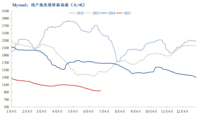 回顧2025年上半年的煉焦煤市場,過剩的壓力和悲觀的預(yù)期依舊壓制煉焦煤持續(xù)下跌。雖然從下游鐵水?dāng)?shù)據(jù)來看,剛需較去年同比有所回升。但供應(yīng)過剩、市場信心缺失依舊導(dǎo)致煉焦煤價格延續(xù)去年單邊下行的行情走勢,各煤種價格已降至8年內(nèi)新低。雖然在三月底四月初煤價出現(xiàn)曇花一現(xiàn)般短暫上漲,但總體跌勢不改,基本面矛盾持續(xù)加劇,市場悲觀情緒蔓延,投機市場活躍度持續(xù)降低,上游庫存持續(xù)高壓。展望下半年市場,煤炭供應(yīng)在低價格壓制之下將有收縮預(yù)期,但煤礦全年生產(chǎn)任務(wù)仍需完成,國內(nèi)煤炭大幅減產(chǎn)難度較大,進(jìn)口煤需求下滑,通關(guān)量有小幅減量的可能。而需求側(cè)鋼廠由于盈利狀況尚可,短期高爐減產(chǎn)力度不大,但隨著成材消費下滑以及出口壓力加大,下半年鐵水產(chǎn)量環(huán)比下滑仍是大概率事件。因此下半年煉焦煤市場基本面仍將維持寬松格局,但由于煤價下行已逼近煤礦生產(chǎn)成本,高成本煉焦煤資源已被擠出,煉焦煤價格底部顯現(xiàn),煤礦讓利空間有限,預(yù)計行情降幅將小于上半年,煤價加速下跌的時期已經(jīng)過去,后續(xù)價格博弈將更為激烈,不排除階段性供需錯配引發(fā)行情短期波動。
