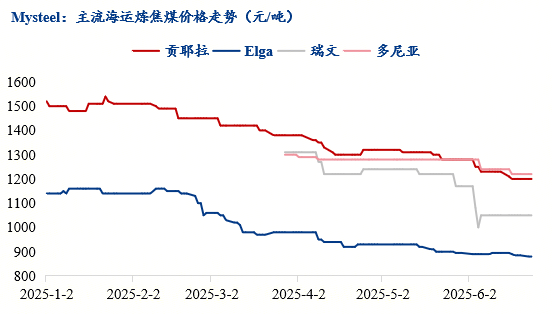海運煉焦煤價格在我國的現(xiàn)貨價格,今年以來重心整體下移。俄焦煤因整體貨量較大,疊加品質(zhì)相對其他煤種較差,價格向下幅度更加明顯。澳煤、加煤價格因前期采購成本支撐,貿(mào)易出貨環(huán)節(jié)雖然大幅度下調(diào)報價,但是實盤成交情緒依舊相對冷清。同時,整體國內(nèi)港口現(xiàn)貨價格與國際市場價格也形成較大劈叉,導(dǎo)致礦山對國內(nèi)市場銷貨信心受損,且銷售策略有所調(diào)整。而印度市場作為主要國際買方,近期其國內(nèi)煉焦煤港口庫存上漲較快,對高價資源接受度也有所下降,但是國際價格高位仍受多種因素制約,短期國內(nèi)外價差仍難修復(fù)。后續(xù)下半年國內(nèi)價格重心在基本面沒有明顯優(yōu)化的狀態(tài)下,仍有下移的預(yù)期。