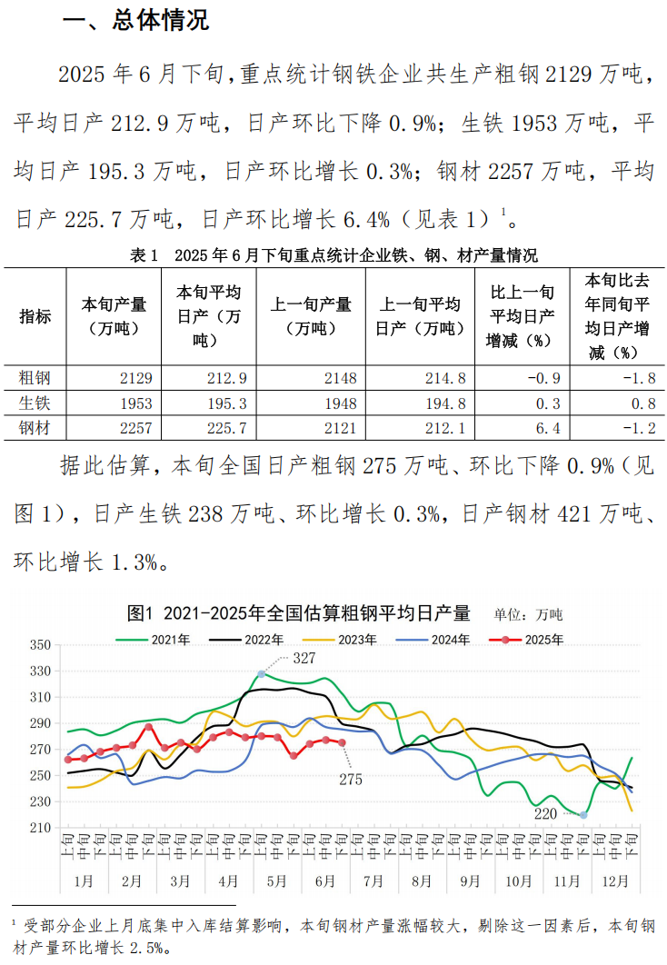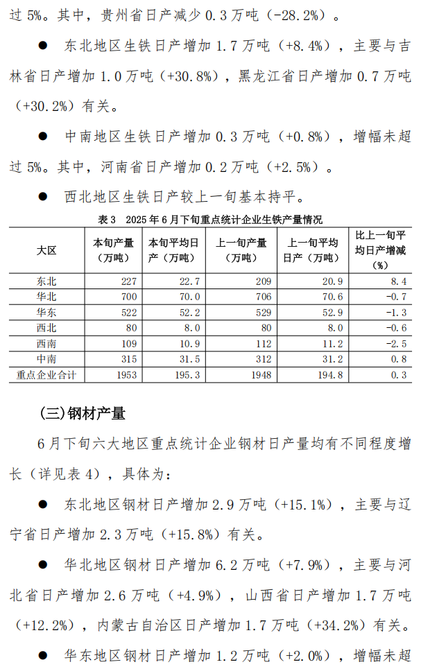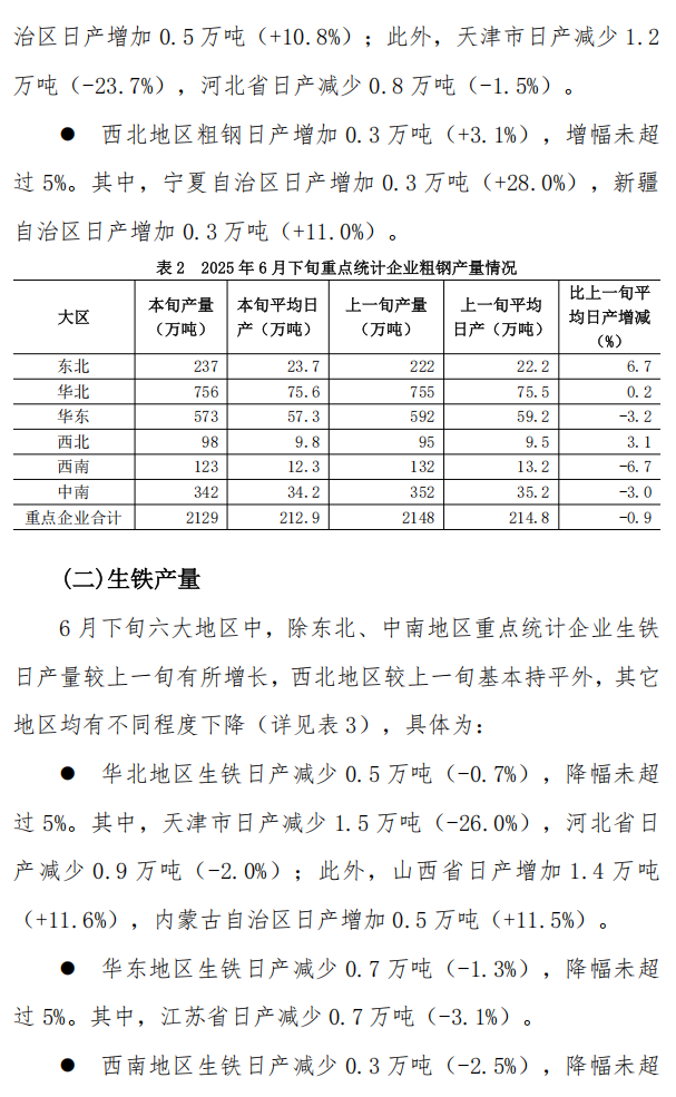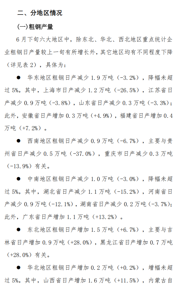 6月下旬重點(diǎn)統(tǒng)計(jì)鋼鐵企業(yè)鋼鐵產(chǎn)量旬報(bào)