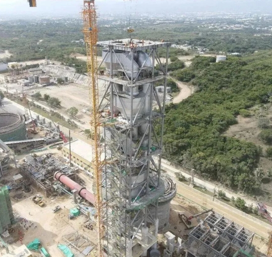 近日,由(天津水泥院)裝備集團(tuán)總承包的多米尼加CIBAO水泥5線(日產(chǎn)3500噸熟料)項(xiàng)目窯尾塔架順利封頂。CIBAO水泥公司管理團(tuán)隊(duì)、總包管理團(tuán)隊(duì)及分包單位和全體施工人員共同見證這一重要時刻。