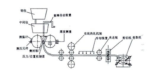 圖1 寶鋼雙輥薄帶連鑄機(jī)組示意圖