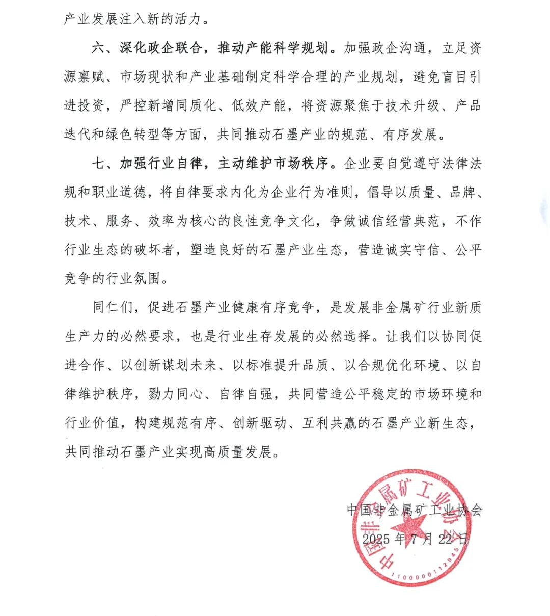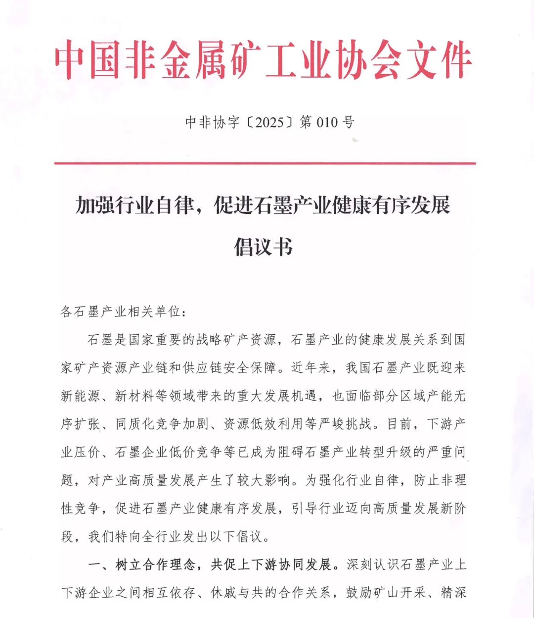 加強(qiáng)行業(yè)自律,促進(jìn)石墨產(chǎn)業(yè)健康有序發(fā)展倡議書