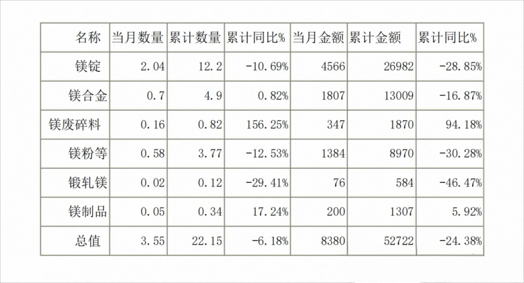 2025年1-6月中國鎂產(chǎn)品出口統(tǒng)計