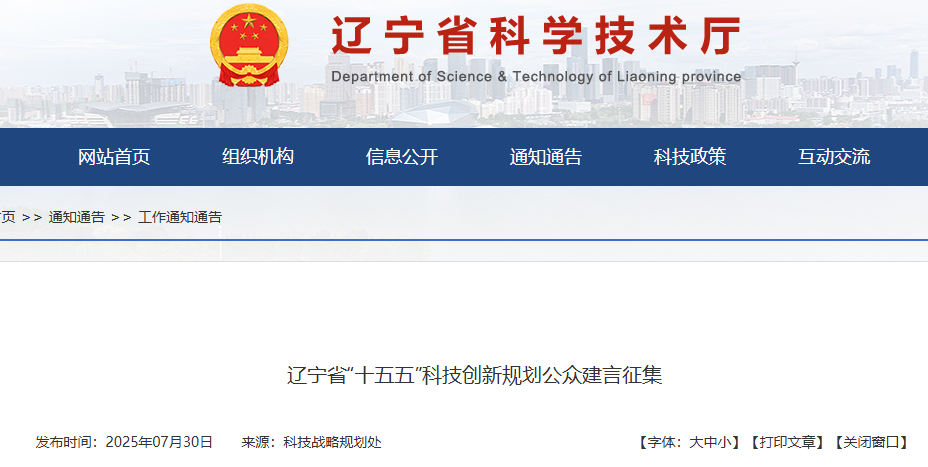 “十五五”時期是我國基本實(shí)現(xiàn)社會主義現(xiàn)代化承上啟下的關(guān)鍵時期,也是推進(jìn)新時代遼寧全面振興的關(guān)鍵時期。為科學(xué)編制遼寧省“十五五”科技創(chuàng)新規(guī)劃,廣泛匯集智慧,提升規(guī)劃的前瞻性、科學(xué)性、可操作性,現(xiàn)面向社會公開征集意見建議,誠邀社會各界建言獻(xiàn)策。