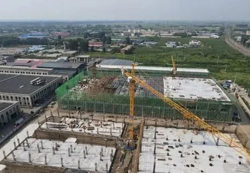 烈日炎炎,遼陽興旺石墨制品有限公司新建年產(chǎn)8000噸高端新材料項目建設(shè)現(xiàn)場,施工者不畏高溫加緊施工。