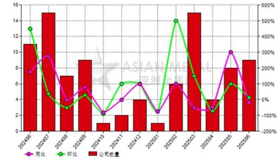 北京(亞洲金屬)2025-08-04 6月份中國共計9家白剛玉生產商增產,上個月為8家,去年同期為11家。6月份增產白剛玉生產商分布為山東5家,河南4家。