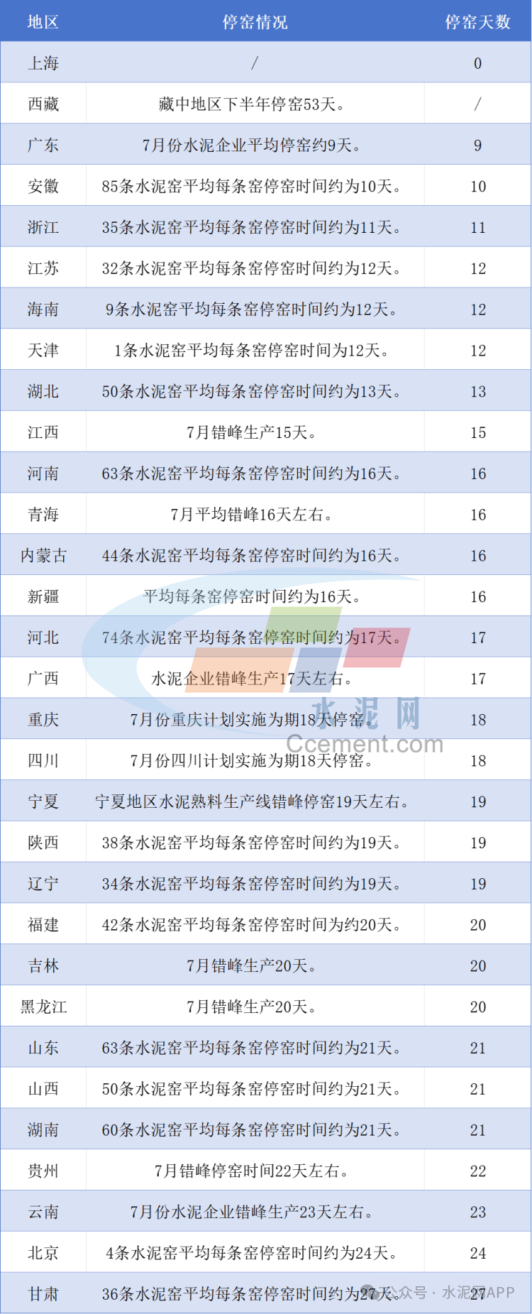 據(jù)市場(chǎng)反饋,8月20日起京津冀全域熟料線將停窯15-20天,部分區(qū)域15日起停窯;東北三省8月繼續(xù)停窯20天;河南省水泥企業(yè)8月15號(hào)起停窯20天;云南區(qū)域三季度計(jì)劃執(zhí)行累計(jì)50天錯(cuò)峰生產(chǎn)...