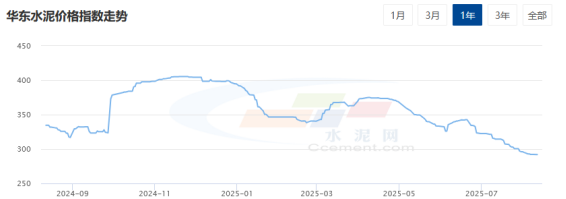華東地區(qū)水泥價格指數近兩月持續(xù)走低