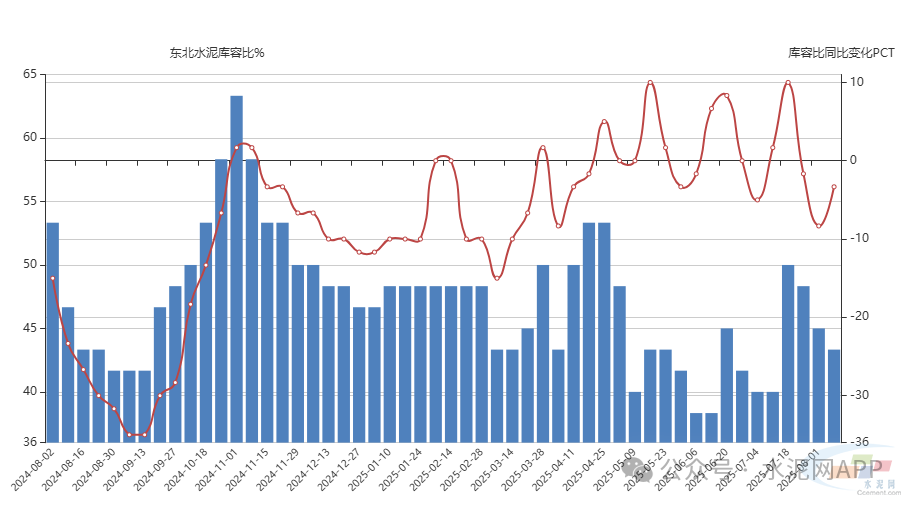 從庫容情況來看,7月中旬以來,東北水泥庫容持續(xù)下降,截止到8月初,庫容水平已經(jīng)低于去年同期。