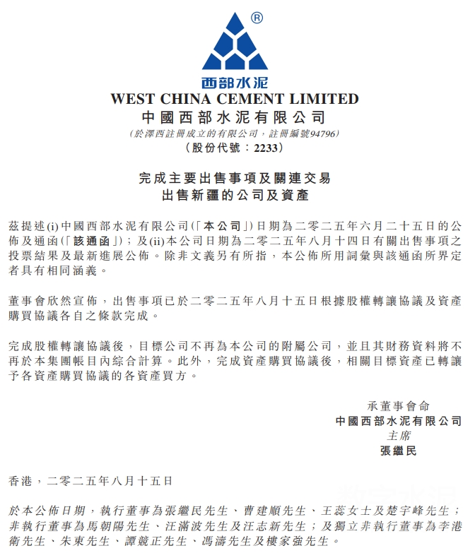 6月25日晚,西部水泥發(fā)布公告稱,擬出售旗下新疆的公司和資產(chǎn),各目標公司均主要從事水泥及水泥產(chǎn)品的制造及銷售、石灰石及建筑材料的銷售以及提供廢物處理服務的公司,累計作價16.5億。