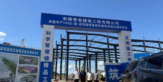 2025 年 8 月 15 日上午,安徽鎂源智能裝備有限公司年產(chǎn) 140 臺(tái)套高性能鎂基固態(tài)儲(chǔ)氫系統(tǒng)及測(cè)試項(xiàng)目 1# 廠(chǎng)房鋼結(jié)構(gòu)工程順利封頂。青陽(yáng)開(kāi)發(fā)區(qū)管委會(huì)陳穗主任、張懿君副主任;浙江鎂源動(dòng)力科技有限公司董事長(zhǎng)陳哲、總經(jīng)理劉兵銀;安徽青宏建筑工程有限公司董事長(zhǎng)王偉、副總經(jīng)理胡孫洪等出席儀式。