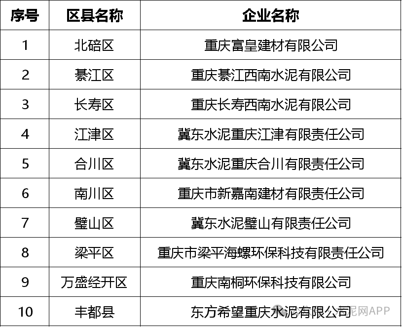 在《重慶市2025年土壤污染重點監(jiān)管單位名錄》里,包含10家水泥企業(yè),具體見下表: