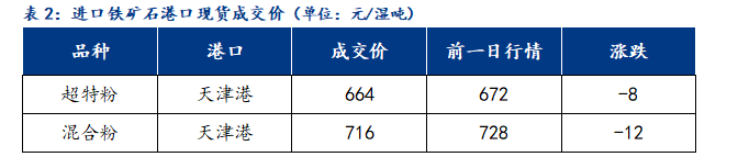 供應(yīng)方面,目前天津港口可貿(mào)易資源庫(kù)存有所下降,中品粉資源有所減少,塊礦資源有所補(bǔ)充。