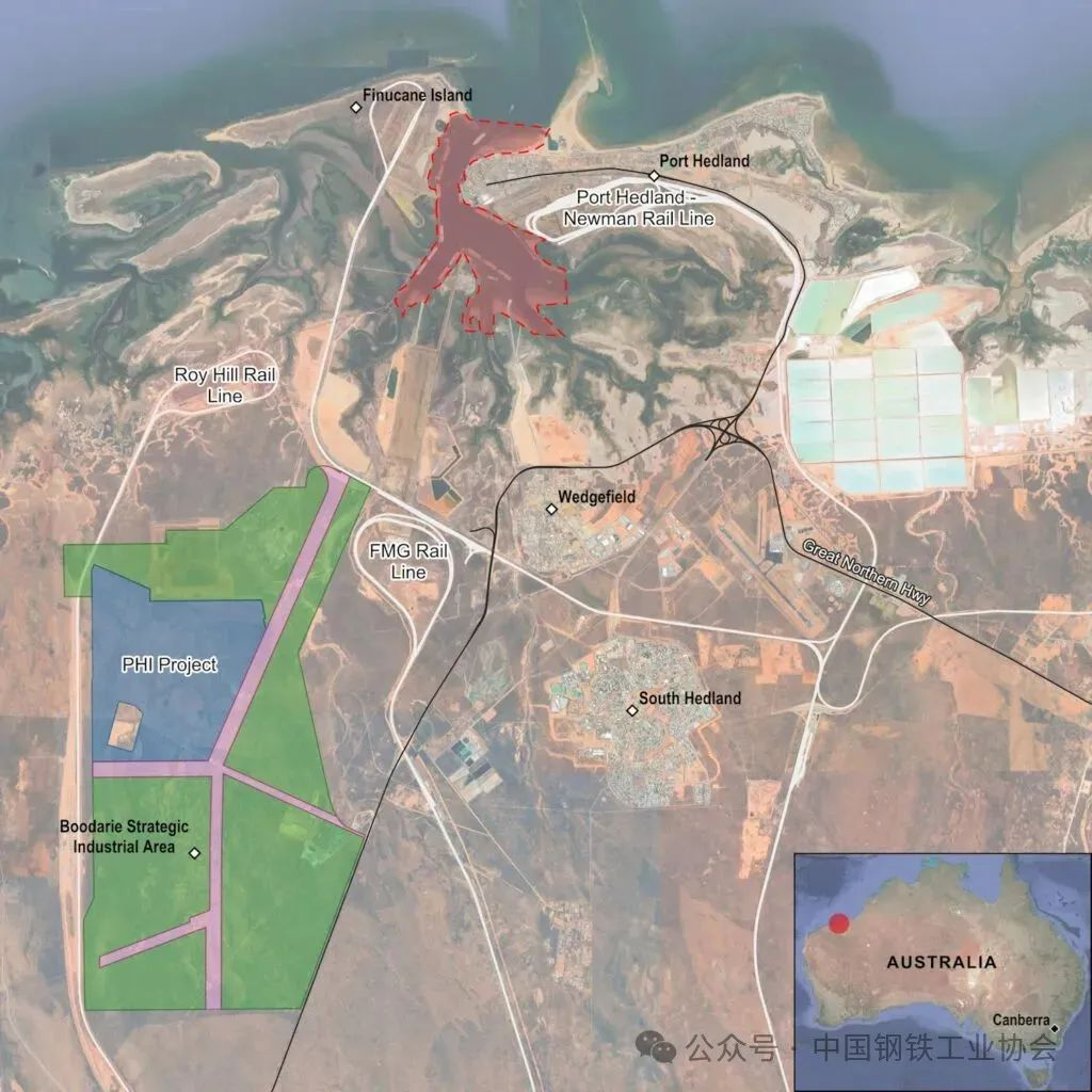 黑德蘭鋼鐵(PHI)項目將位于Boodarie戰(zhàn)略工業(yè)區(qū),距離黑德蘭港和黑德蘭港約10公里