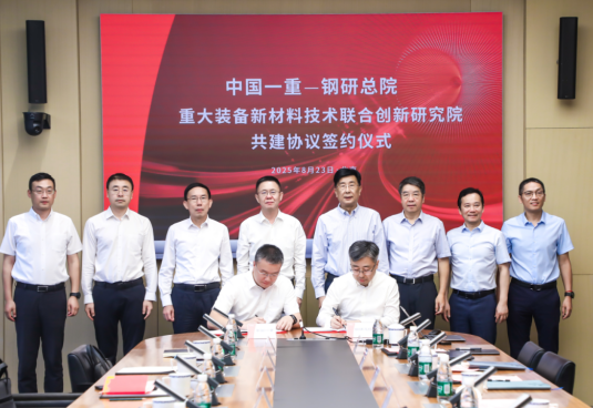 8月23日,中國(guó)一重與中國(guó)鋼研在京簽署“重大裝備新材料技術(shù)聯(lián)合創(chuàng)新研究院”共建協(xié)議。集團(tuán)公司黨委書(shū)記、董事長(zhǎng)呂智強(qiáng),中國(guó)鋼研黨委書(shū)記、董事長(zhǎng)張少明出席活動(dòng)并座談交流,共同見(jiàn)證協(xié)議簽署。集團(tuán)公司黨委常委、總會(huì)計(jì)師張文平,中國(guó)鋼研黨委常委、副總經(jīng)理趙棟梁參加簽約儀式。股份公司副總裁、總工程師趙德利,中國(guó)鋼研鋼鐵研究總院黨委書(shū)記、總經(jīng)理梁劍雄分別代表雙方簽署協(xié)議。